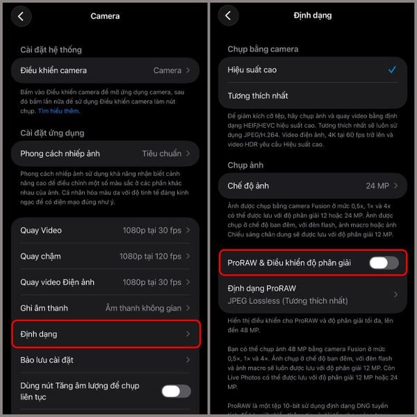 Bước 4: Bật ProRAW trong ứng dụng Máy ảnh