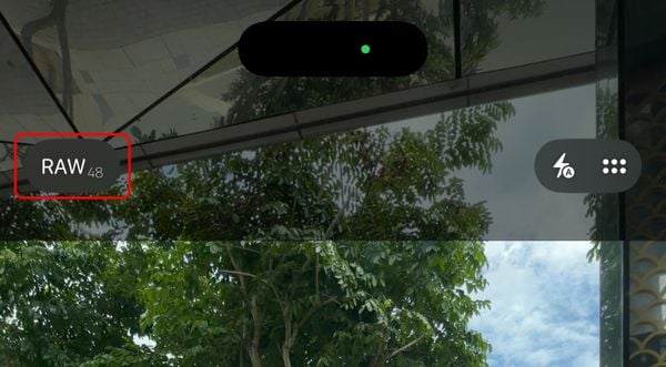 Mở ứng dụng Camera, bạn sẽ thấy biểu tượng RAW ở góc trên màn hình. Chạm vào biểu tượng này để bật/tắt ProRAW khi chụp. Khi bật, biểu tượng RAW sẽ sáng lên.
