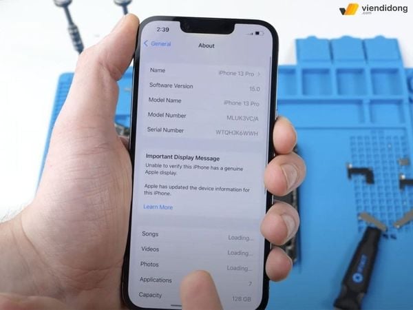 Màn hình là linh kiện đắt nhất và dễ bị thay nhất. Để biết màn hình có phải zin hay không, hãy kiểm tra True Tone bằng cách vào Cài đặt → Màn hình & độ sáng. Nếu thiếu tính năng này, gần như chắc chắn màn hình đã bị thay. Sau đó, hãy test các màu trắng, đen, đỏ, xanh để xem có điểm chết hay ám màu không. Màn zin sẽ hiển thị đồng đều, không chói góc, không loang sáng.